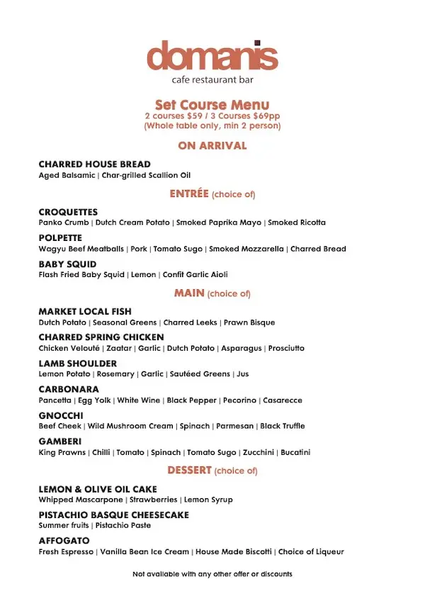 Wednesday $70 Menu
